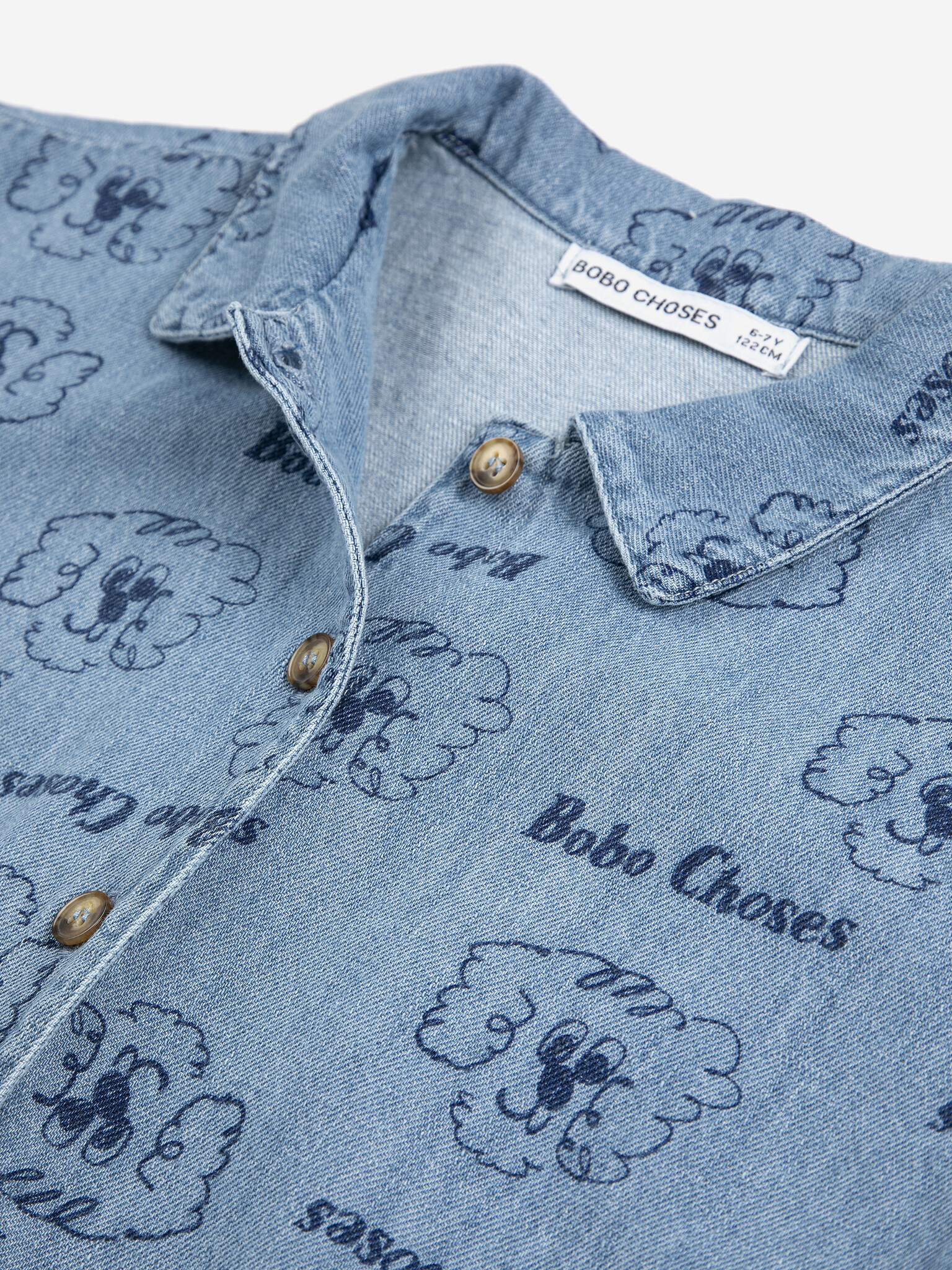 Bobo Choses | pickle the dog all over denim shirt | prussian blue