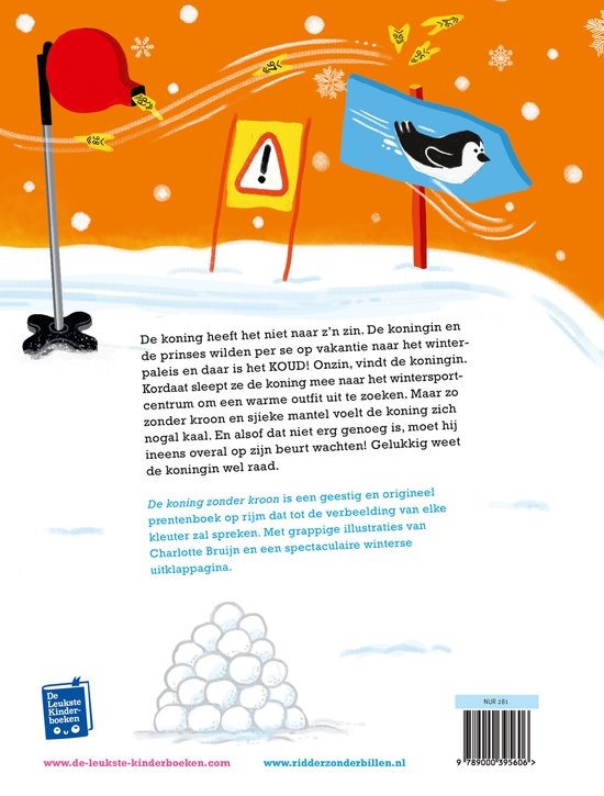 De koning heeft het niet naar z’n zin. De koningin en de prinses wilden per se op vakantie naar het winterpaleis en daar is het KOUD! Onzin, vindt de koningin. Kordaat sleept ze de koning mee naar het wintersportcentrum om een warme muts, lekkere wanten en een fijn dik skipak uit te zoeken. Maar zo zonder kroon en sjieke mantel voelt de koning zich nogal kaal. Ineens herkent niemand hem meer en moet hij bij de skilift ook nog eens gewoon op zijn beurt wachten, net als iedereen. Gelukkig weet de koningin wel raad!