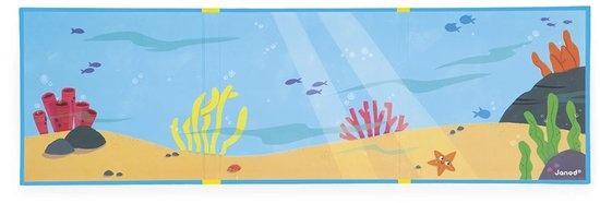 Deze magnetische achtergrond opent de deuren naar de onderwaterwereld met zeedieren voor kinderen vanaf 3 jaar. Dit magnetische spel bestaat uit een geïllustreerde achtergrond en 30 magneten met zeedieren. De fijne motoriek van uw kind wordt verbeterd als het de magnetische onderdelen vastpakt. Hun verbeeldingskracht en creativiteit zullen nog verder worden gestimuleerd, terwijl ze een hele reeks verhalen beginnen te verzinnen. Verhalen vloeien er op natuurlijke wijze uit zodra de achtergrond verticaal wordt geplaatst. De geboorte van een kleine dinosaurus of een vulkaanuitbarsting... de gebeurtenissen liggen in de handen van uw kind. Praktisch, opvouwbaar en dus makkelijk mee te nemen.
