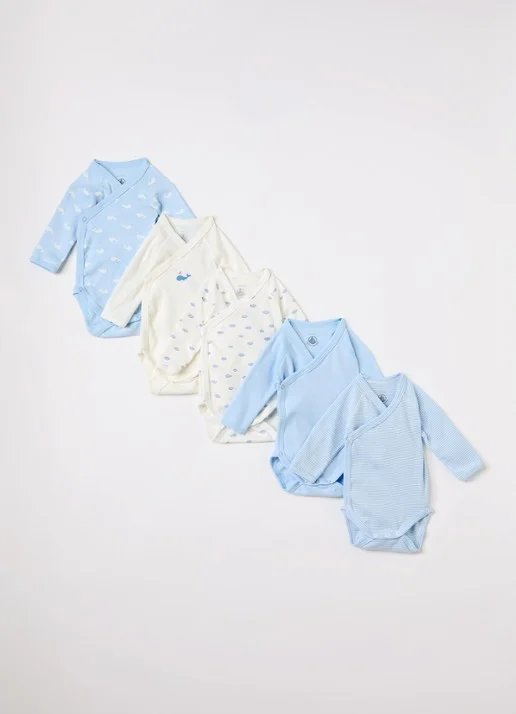Petit Bateau | set van 5 rompers | blauw
